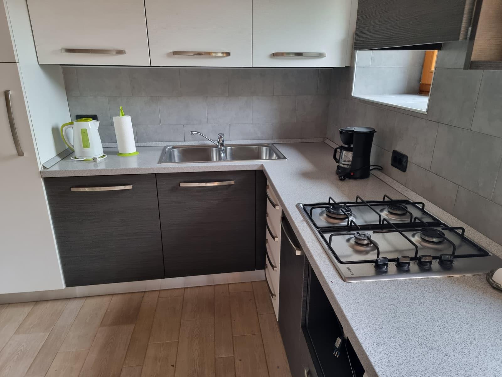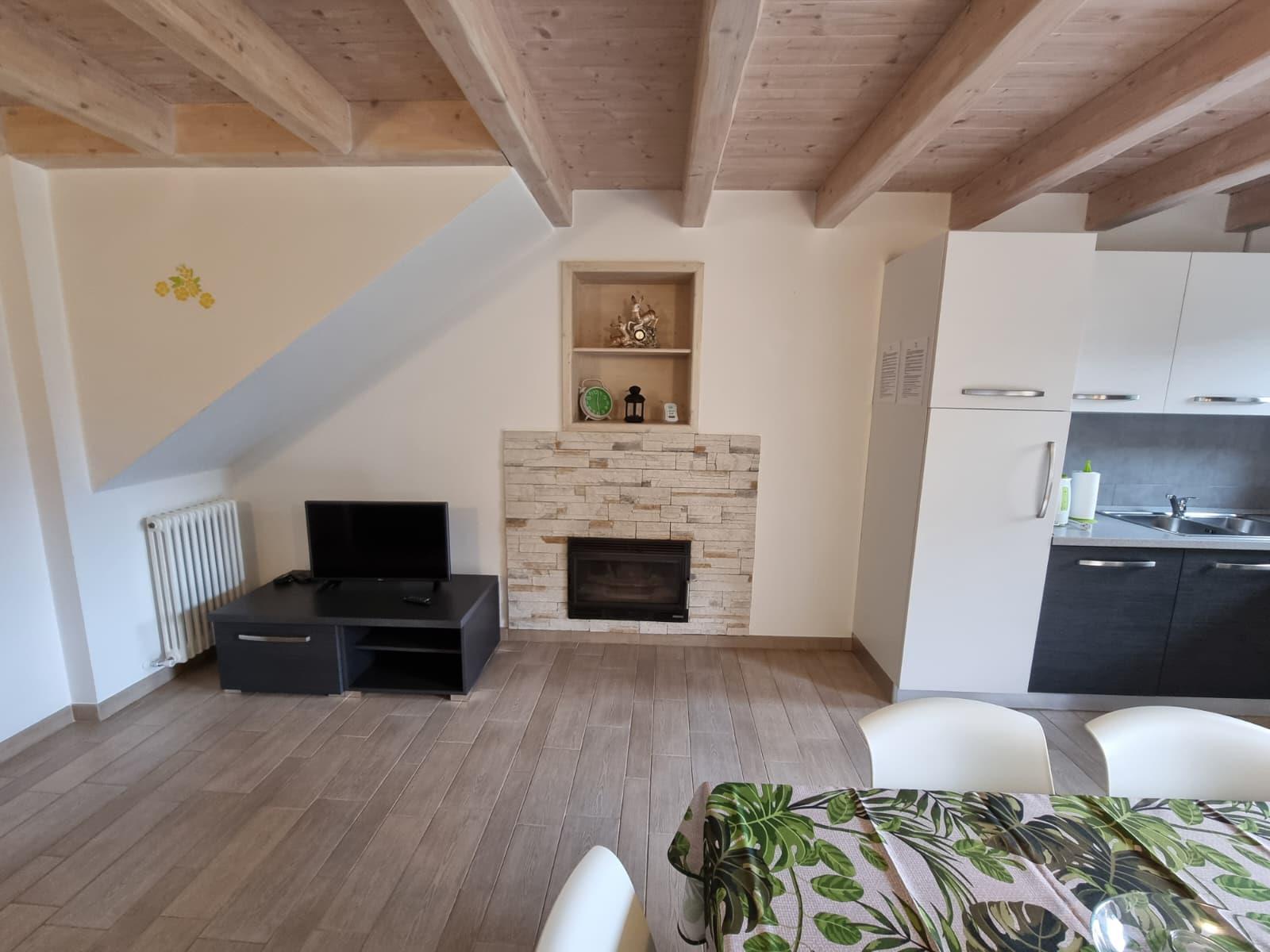 FOUR-ROOM APARTMENT 6 PERSONS: 80 mq. on 3 floors. Ground floor: large living room with satellite TV sofa, lovely fireplace and kitchenette. First floor: one double bedroom, spacious bathroom with double sink, shower/wc. Second floor: one double bedroom and one bedroom with 2 single beds.