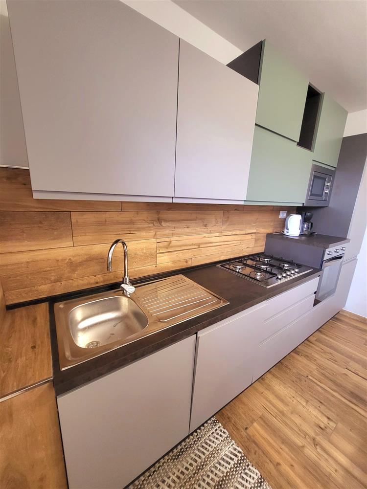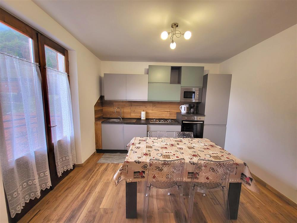 DOTAZIONE: frigo, freezer, microonde, forno, gas a 5 fiamme, lavastoviglie, macchina del caffè tedesco "Melita", tostapane, bollitore, moka, Tv-sat, phon e lavatrice.